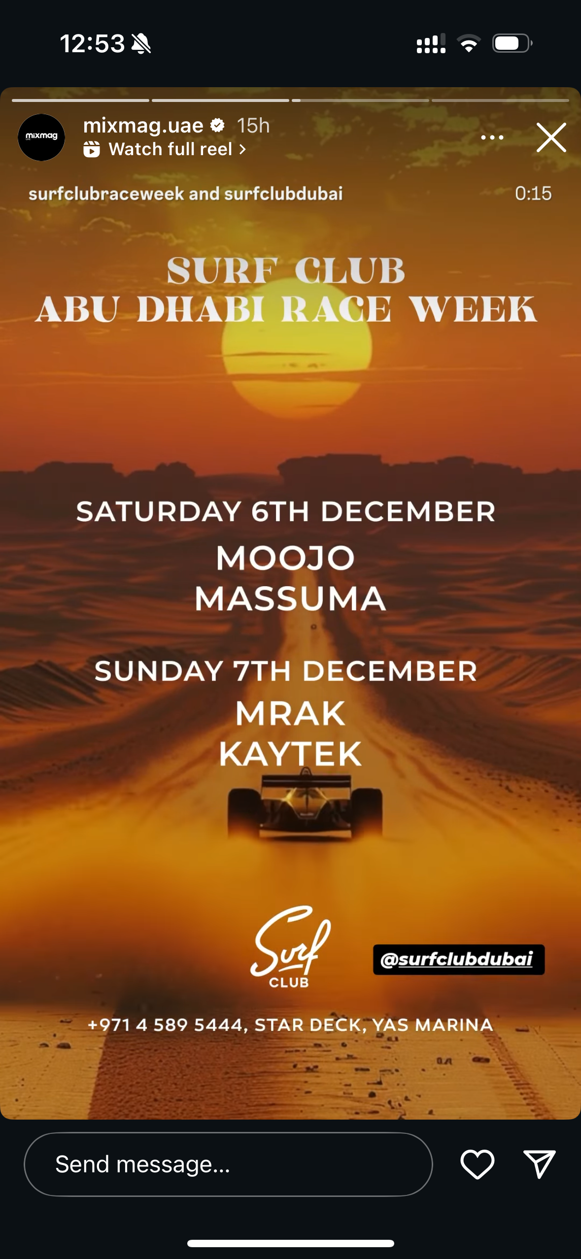 Surf Club Abu Dhabi Race Week at Star Deck, Yas Marina, Yas Island, Abu Dhabi. Lineup: Sunday 7 December - Mrak, Kaytek. Info: +971 4 589 5444. Instagram: https://instagram.com/surfclubdubai